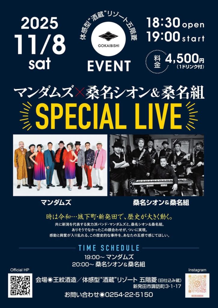 酒蔵LIVE マンダムズ×桑名シオン&桑名組 SPECIAL LIVE が行われます!。