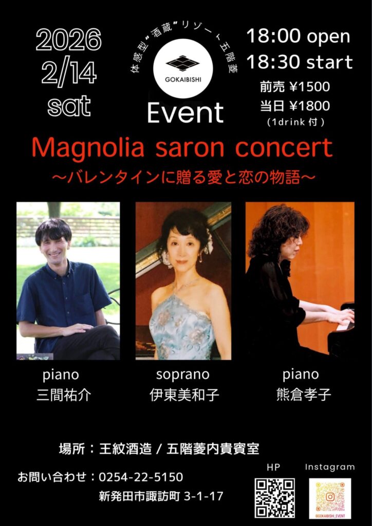LIVE EVENT Magnolia saron concert~バレンタインに贈る愛と恋の物語~が行われます!